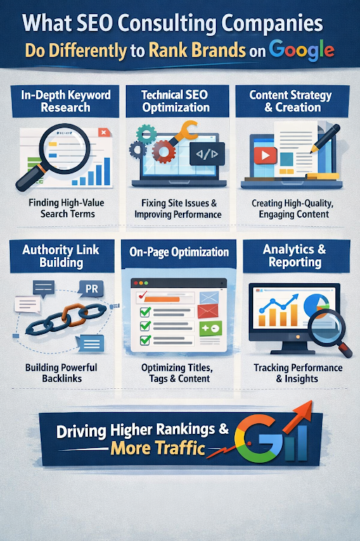 Having researched and studied the SEO domain, it is evident that the SEO consulting firms are working with a higher level of strategy, precision, and accountability. They do not use any shortcut or no longer effective methods, Rather, they use the combination of technical know-how, data analysis, content authority, and digital marketing integration to help the brands get the Google rankings.